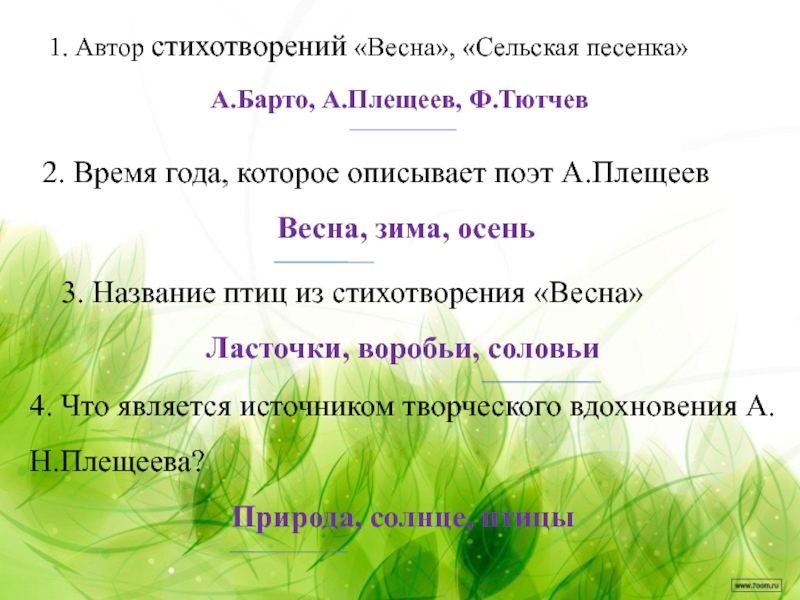 Плещеев «Весна», «Сельская песня».