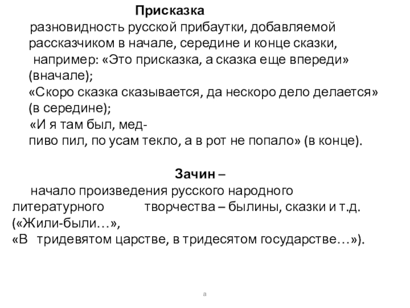 начало произведения русского народного литературного творчества – былины, сказки и т.д. («Жили-были…»,