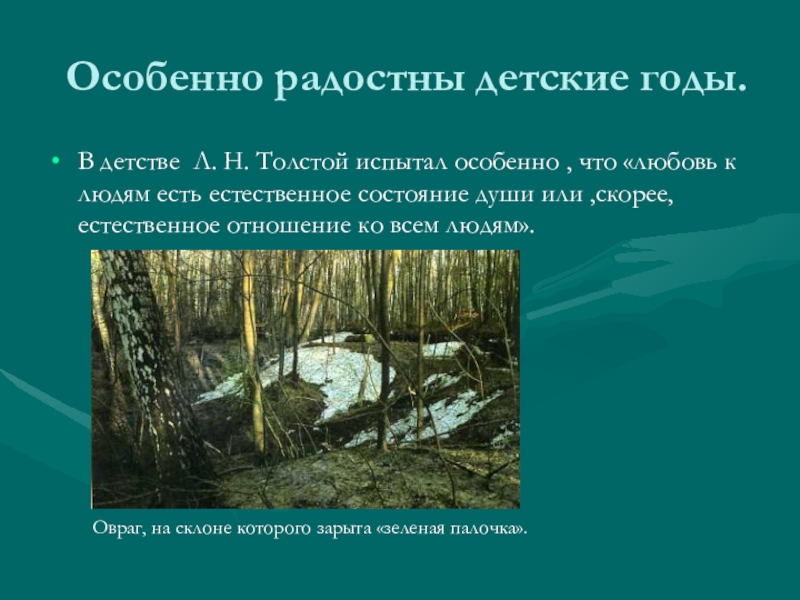 Овраг, на склоне которого зарыта «зеленая палочка».