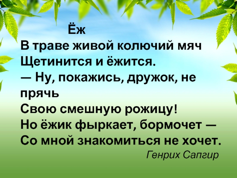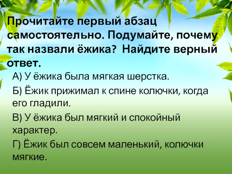 Г) Ёжик был совсем маленький, колючки мягкие.