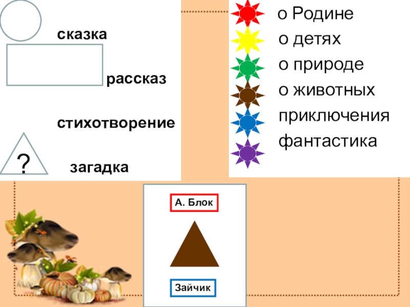 Это сайт презентаций, где можно хранить и обмениваться своими презентациями, докладами, проектами, шаблонами в формате PowerPoint с другими пользователями. Мы помогаем школьникам, студентам, учителям, преподавателям хранить и обмениваться учебными материалами.