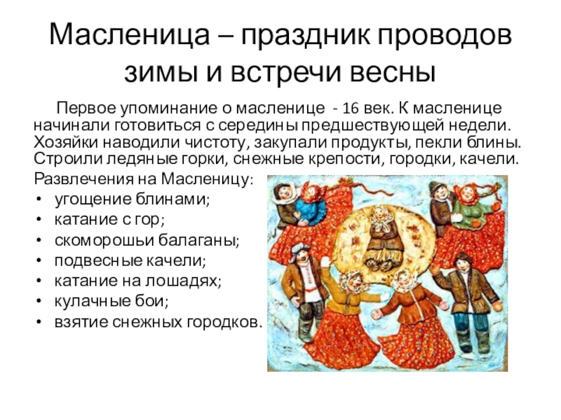 Слайд 3Масленица – праздник проводов зимы и встречи весны