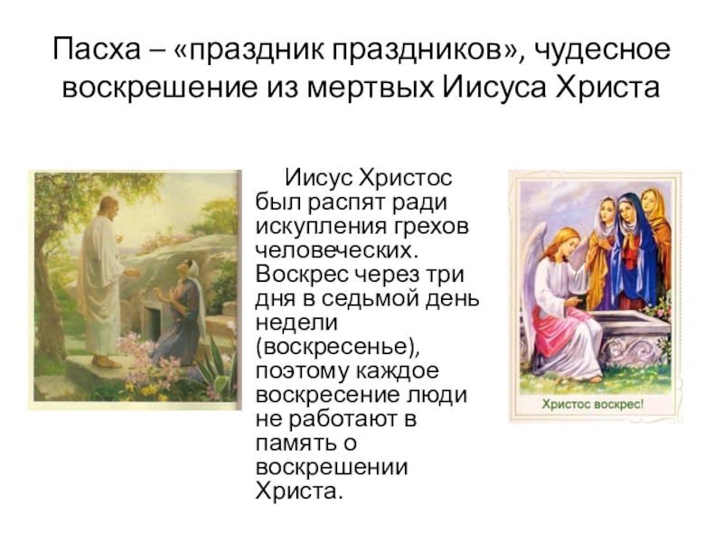 Слайд 12Пасха – «праздник праздников», чудесное воскрешение из мертвых Иисуса Христа