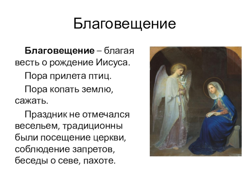 Благовещение – благая весть о рождение Иисуса.