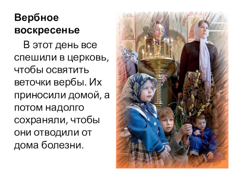 вербы. Их приносили домой, а потом надолго сохраняли, чтобы они отводили от дома болезни.