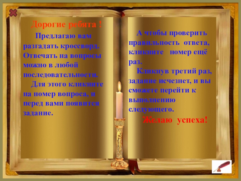 Дорогие ребята ! Предлагаю вам разгадать кроссворд. Отвечать на вопросы можно в любой последовательности.