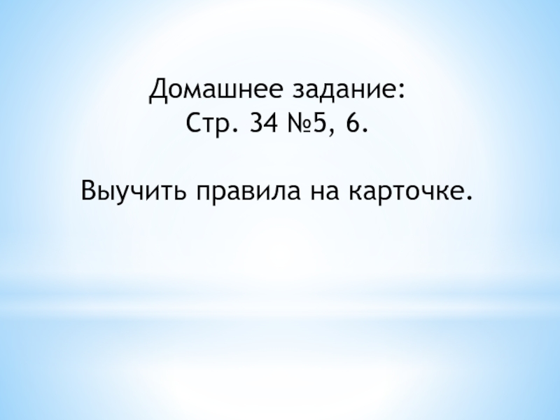 Домашнее задание:Стр. 34 №5, 6.Выучить правила на карточке.