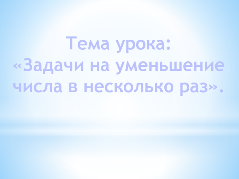 Тема урока:«Задачи на уменьшение числа в несколько раз».