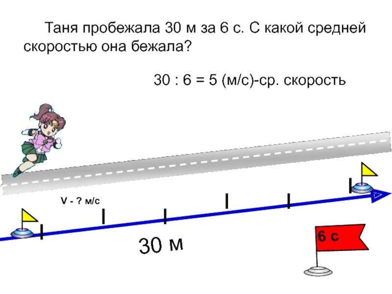 30 : 6 = 5 (м/с)-ср. скорость