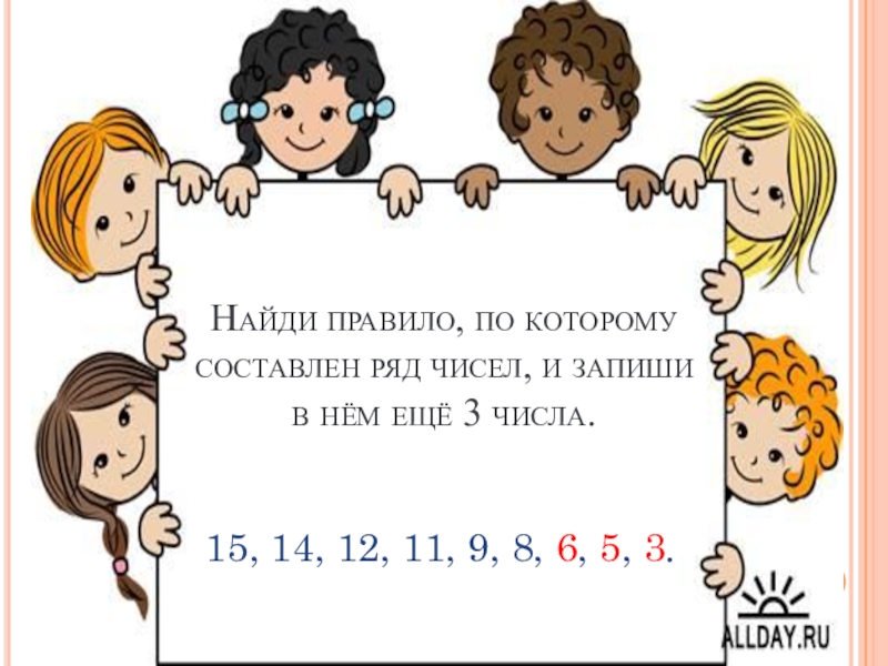 15, 14, 12, 11, 9, 8, 6, 5, 3.