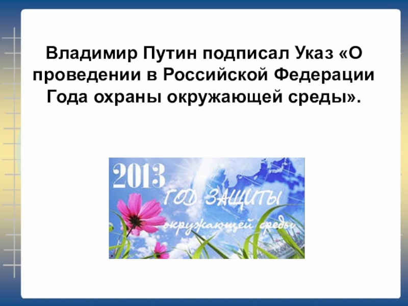 Слайд 2Владимир Путин подписал Указ «О проведении в Российской Федерации Года охраны
