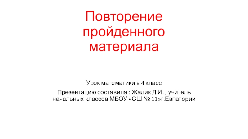 , учитель начальных классов МБОУ «СШ № 11»г.Евпатории