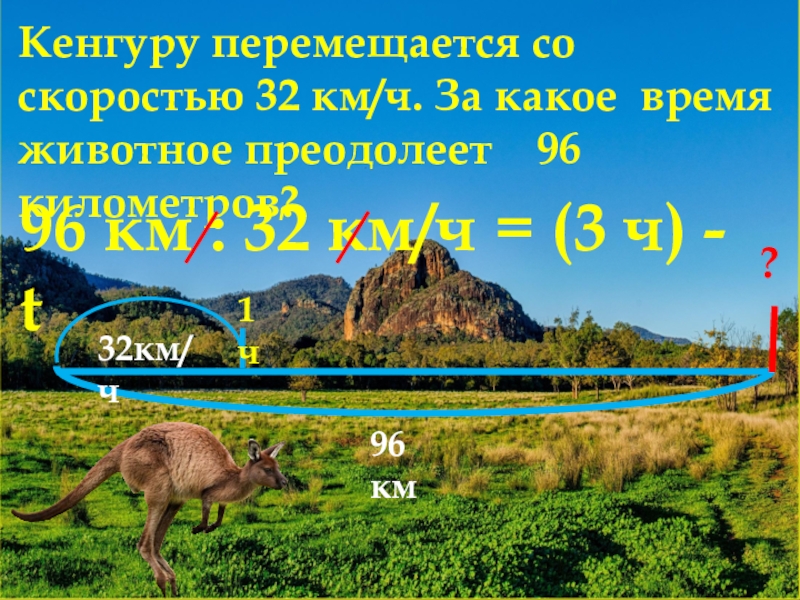 96 км : 32 км/ч = (3 ч) - t