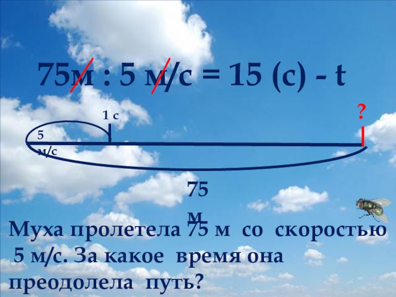 75м : 5 м/с = 15 (с) - t