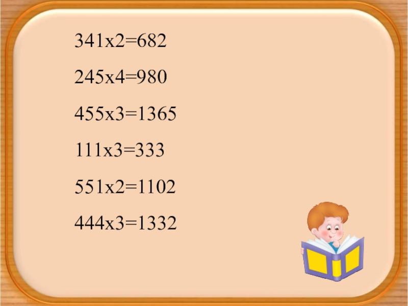 341х2=682245х4=980455х3=1365111х3=333551х2=1102444х3=1332