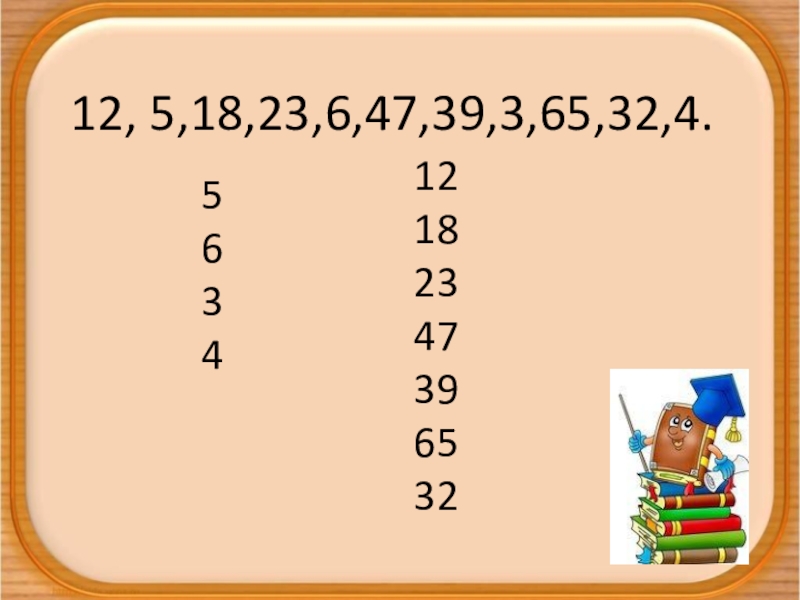 12, 5,18,23,6,47,39,3,65,32,4.