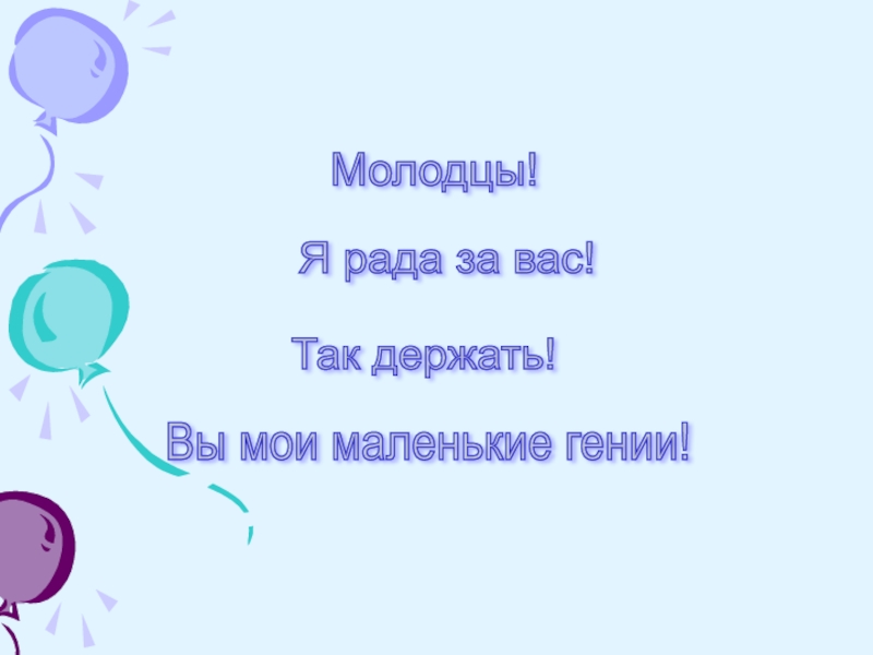 Молодцы! Я рада за вас! Так держать! Вы мои маленькие гении!