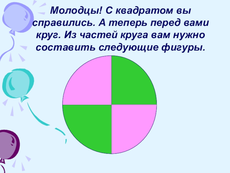 Слайд 4Молодцы! С квадратом вы справились. А теперь перед вами круг. Из