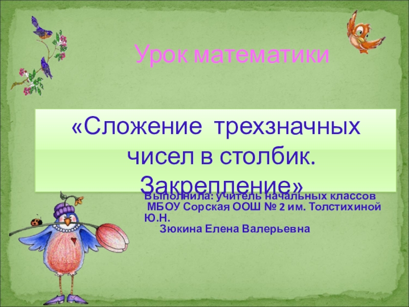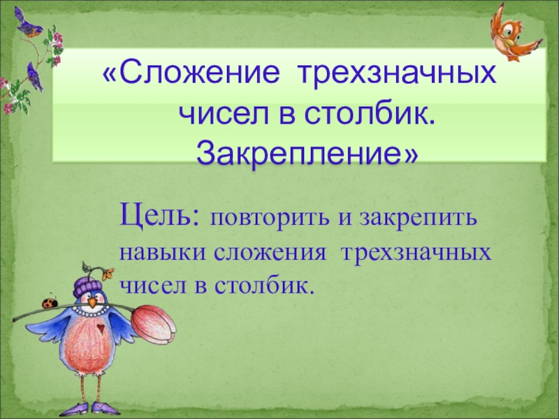 Цель: повторить и закрепить навыки сложения трехзначных чисел в столбик.