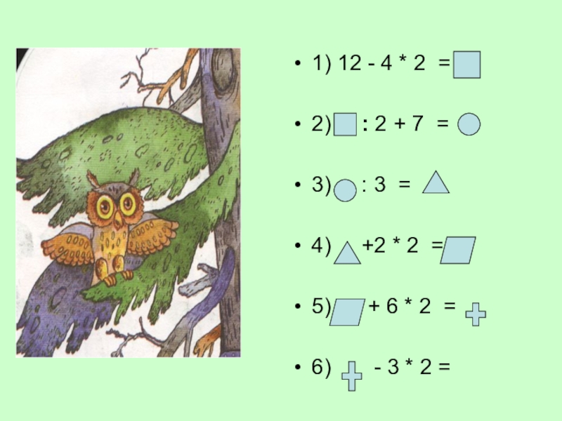 Слайд 71) 12 - 4 * 2 =