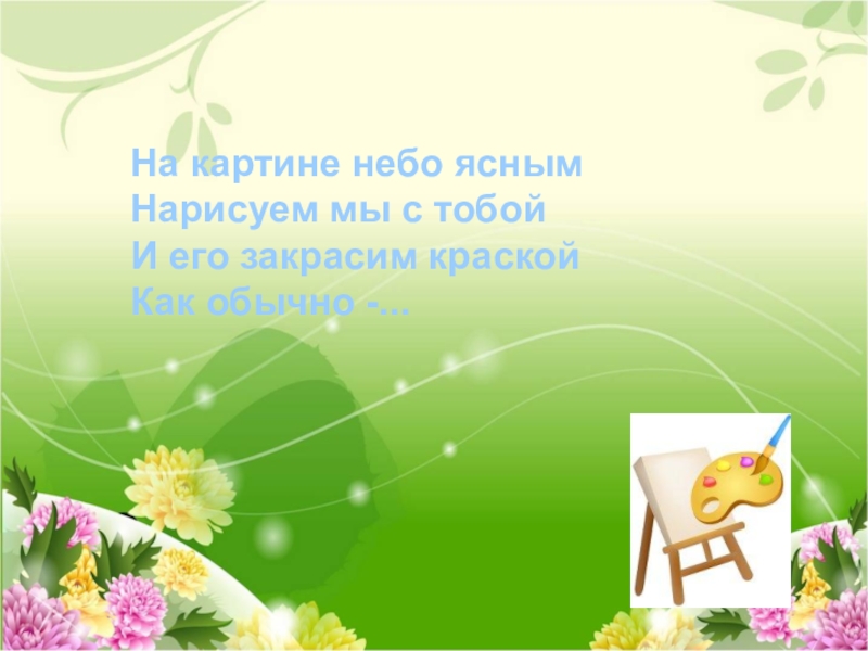 На картине небо ясным Нарисуем мы с тобой И его закрасим краской Как обычно -...