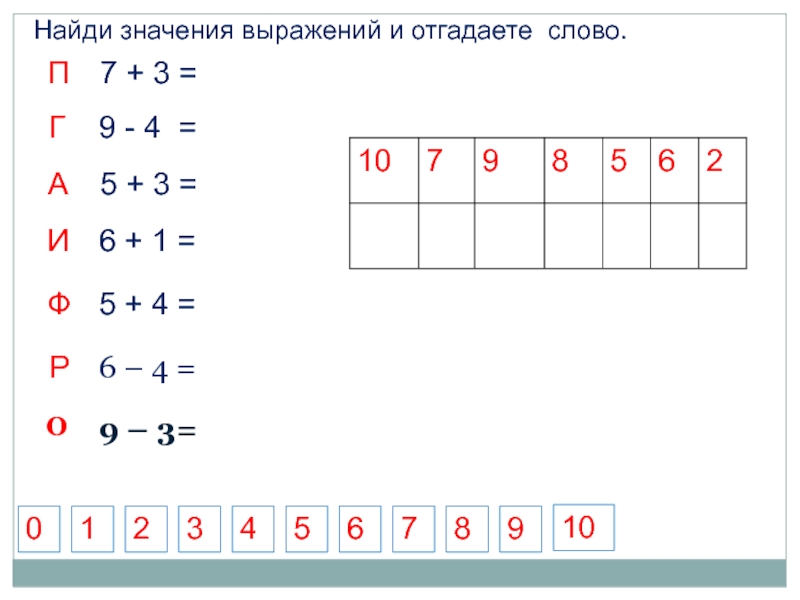 Найди значения выражений и отгадаете слово.