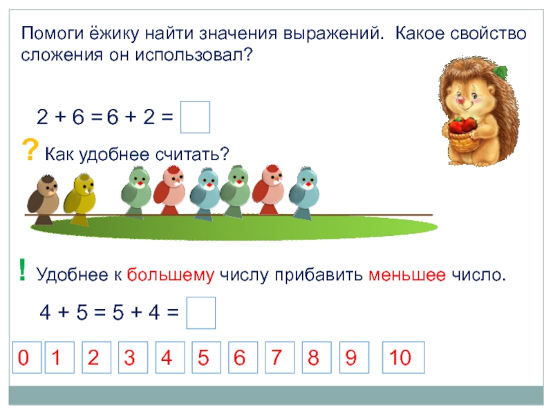 ! Удобнее к большему числу прибавить меньшее число.