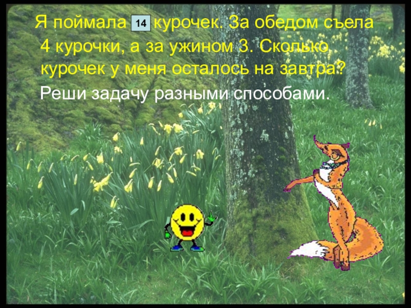 Слайд 5 Я поймала □ курочек. За обедом съела 4 курочки, а