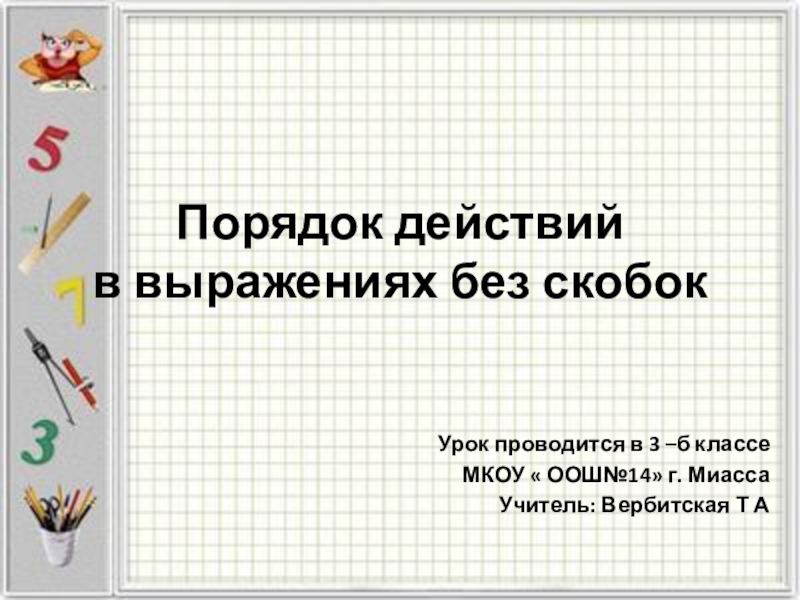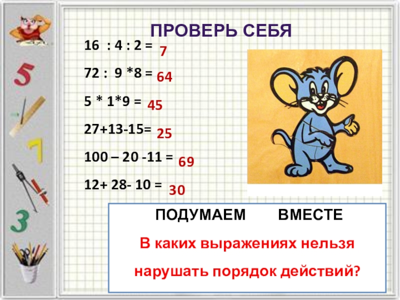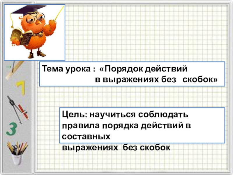 Цель: научиться соблюдать правила порядка действий в составных