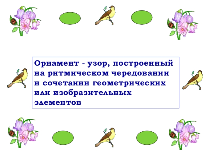 Орнамент - узор, построенный на ритмическом чередовании и сочетании геометрических или изобразительных элементов