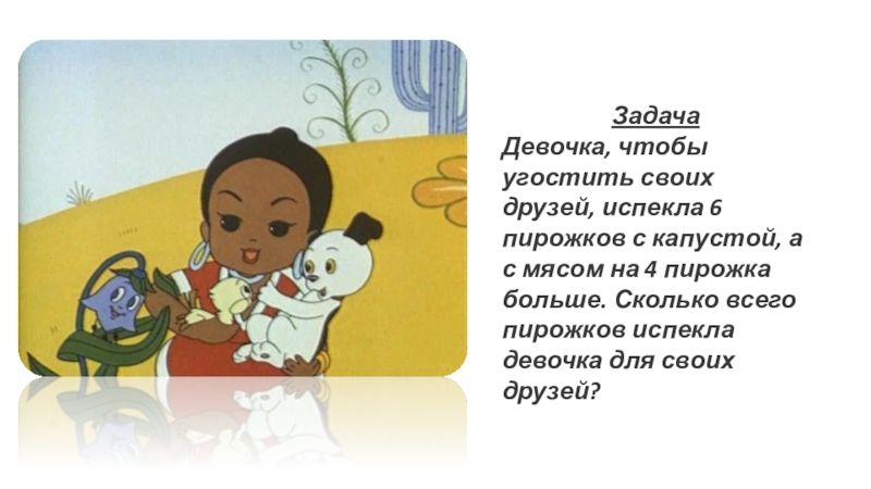с мясом на 4 пирожка больше. Сколько всего пирожков испекла девочка для своих друзей?