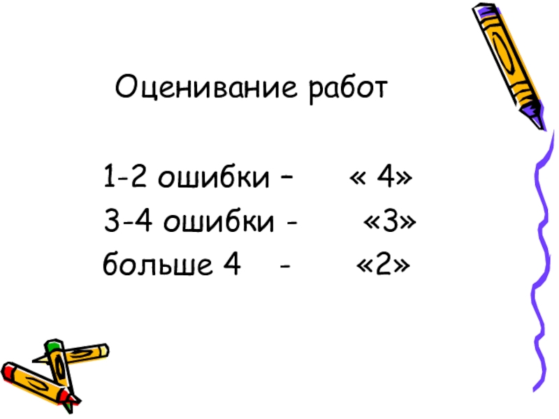Оценивание работ   1-2 ошибки –   « 4»   3-4 ошибки -
