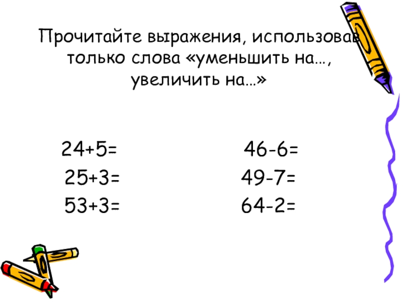 Слайд 3Прочитайте выражения, использовав только слова «уменьшить на…, увеличить на…»