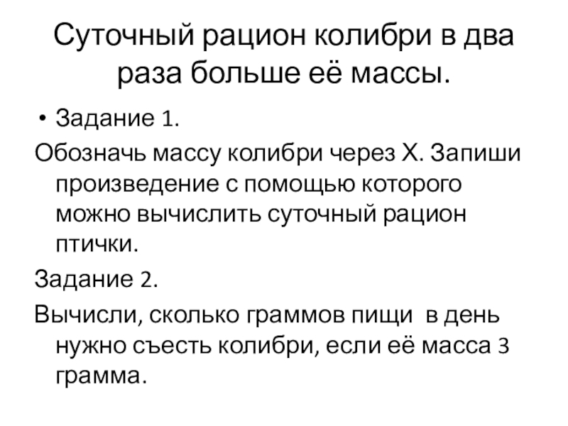 колибри через Х. Запиши произведение с помощью которого можно вычислить суточный рацион птички.