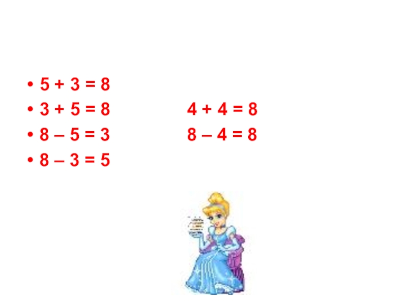 5 + 3 = 8				3 + 5 = 8				4 + 4 = 88 – 5 = 3				8
