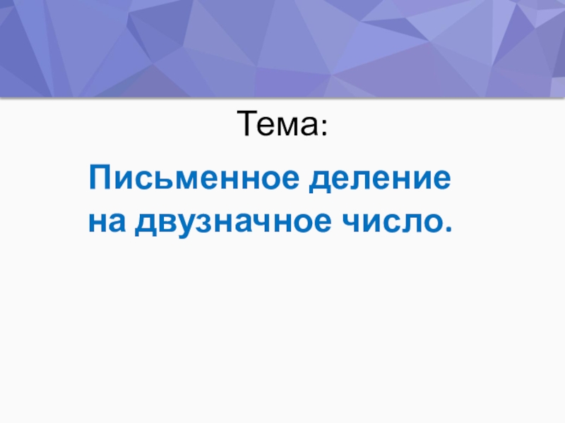 Тема:Письменное деление на двузначное число.