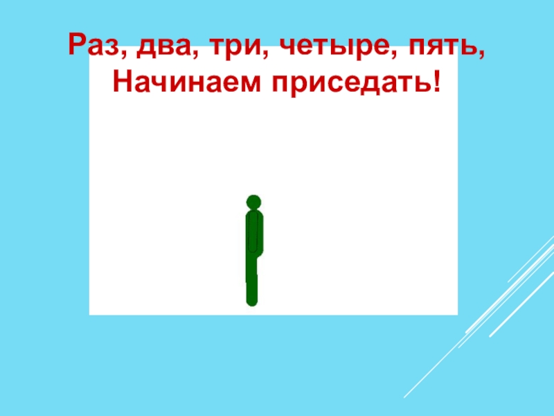 Раз, два, три, четыре, пять,Начинаем приседать!
