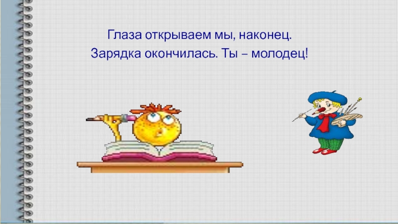 Глаза открываем мы, наконец.Зарядка окончилась. Ты – молодец!