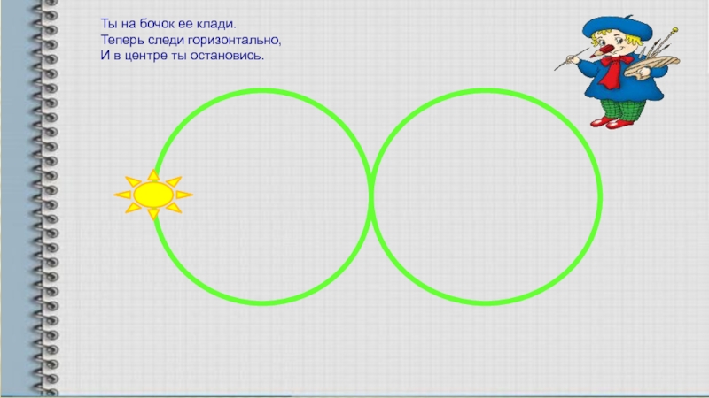 Слайд 10Ты на бочок ее клади. Теперь следи горизонтально, И в центре ты остановись.