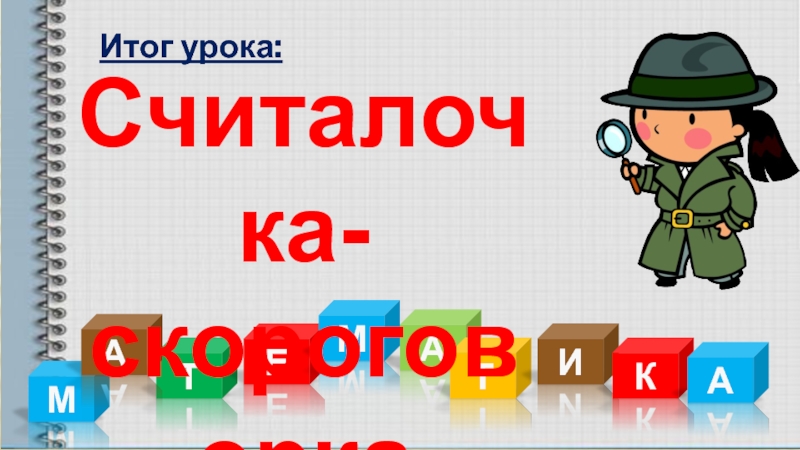 ТЕМАТИКАМАСчиталочка-скороговоркаИтог урока: