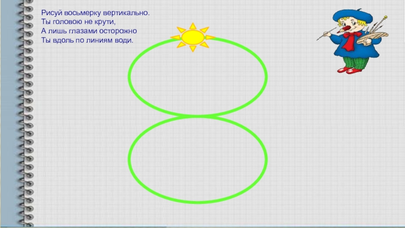 Слайд 9Рисуй восьмерку вертикально. Ты головою не крути, А лишь глазами осторожно Ты вдоль по