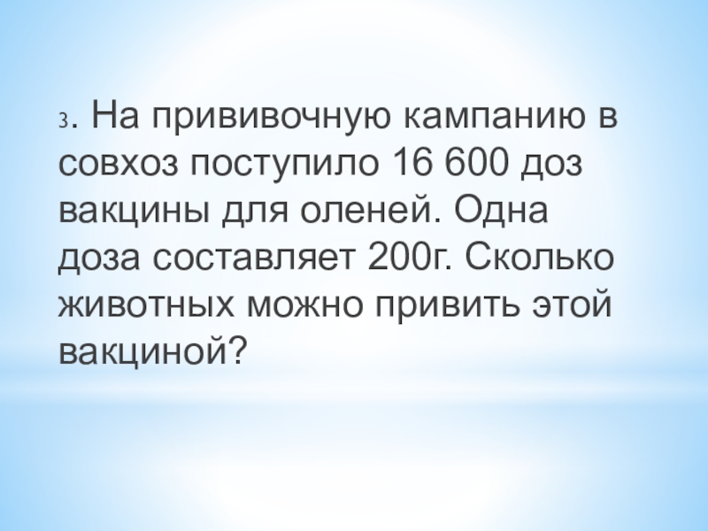 Слайд 203. На прививочную кампанию в совхоз поступило 16 600 доз вакцины