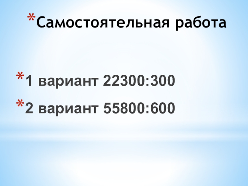 Самостоятельная работа1 вариант 22300:3002 вариант 55800:600