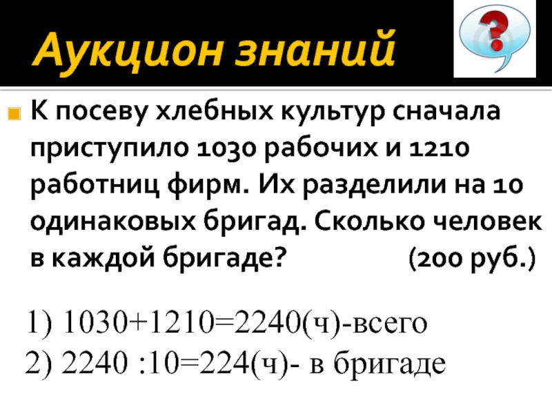 2) 2240 :10=224(ч)- в бригаде