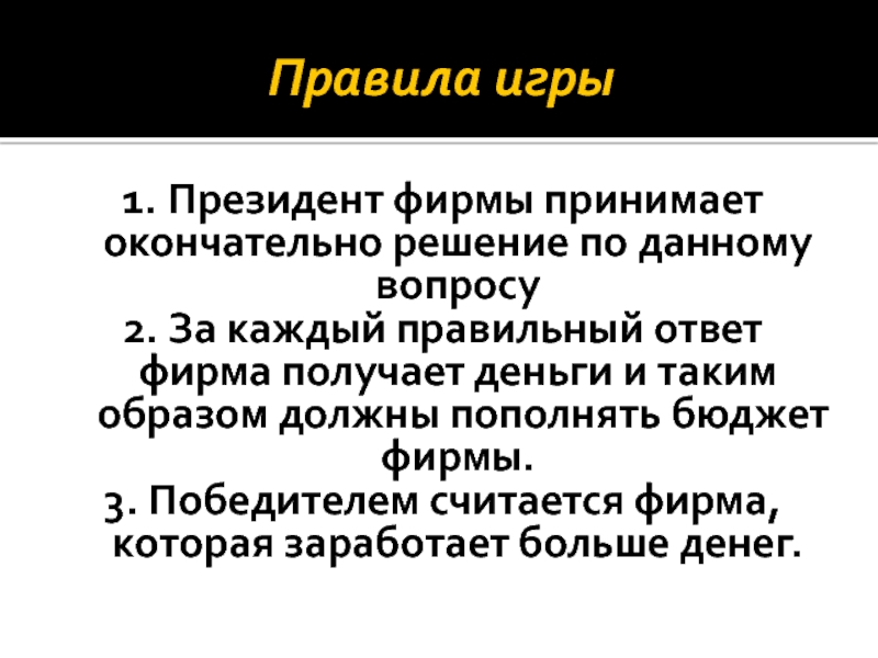 2. За каждый правильный ответ фирма получает деньги и таким образом должны пополнять бюджет фирмы.