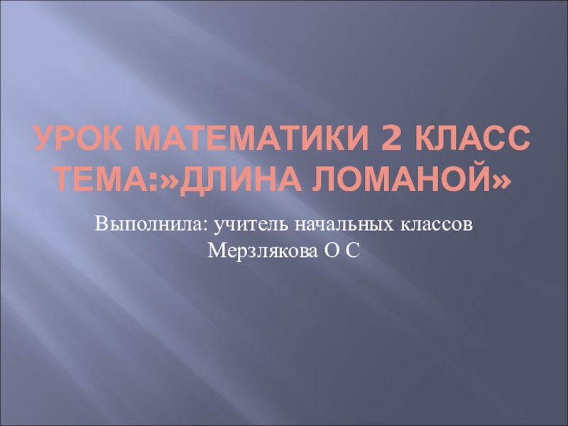 УРОК МАТЕМАТИКИ 2 КЛАСС ТЕМА:»ДЛИНА ЛОМАНОЙ»Выполнила: учитель начальных классов Мерзлякова О С