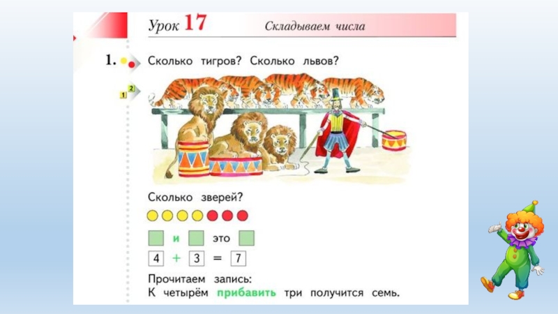 Презентация, доклад к уроку математики для 1 класса по программе Начальная школа XXI века. Складываем числа.