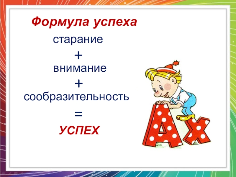 Формула успеха вниманиеУСПЕХ++сообразительностьстарание=