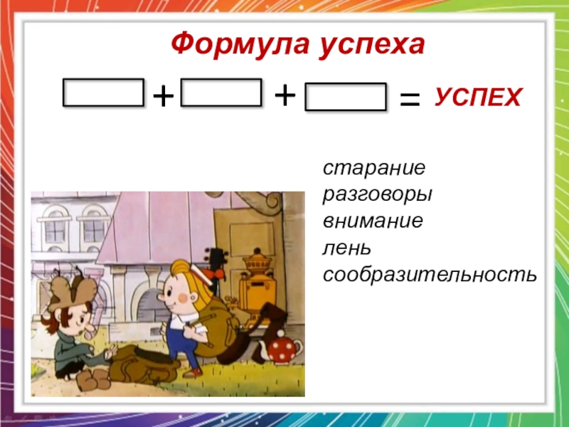 стараниеразговорывниманиеленьсообразительностьУСПЕХ=++Формула успеха