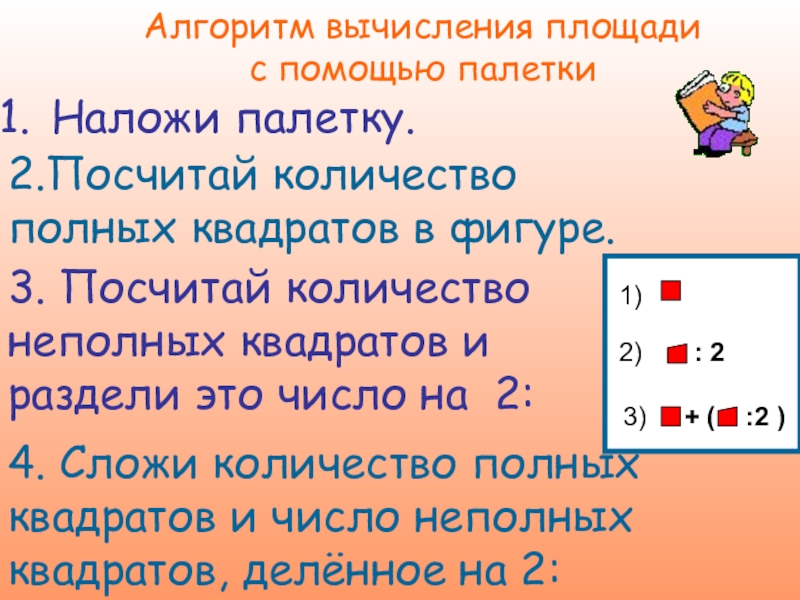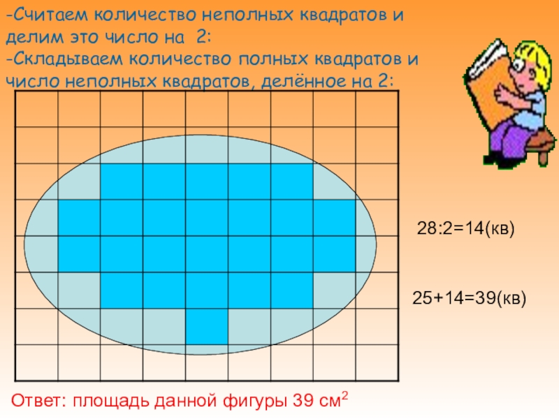 4. Сложи количество полных квадратов и число неполных квадратов, делённое на 2: